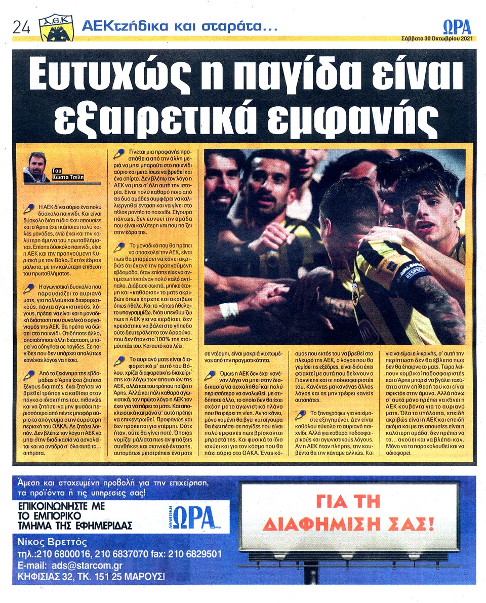 ΑΘΛΗΤΙΚΗ ΩΡΑ ΤΩΝ ΣΠΟΡ - 30 Οκτωβρίου 2021