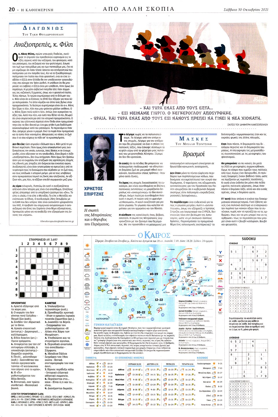 ΚΑΘΗΜΕΡΙΝΗ - 30 Οκτωβρίου 2021