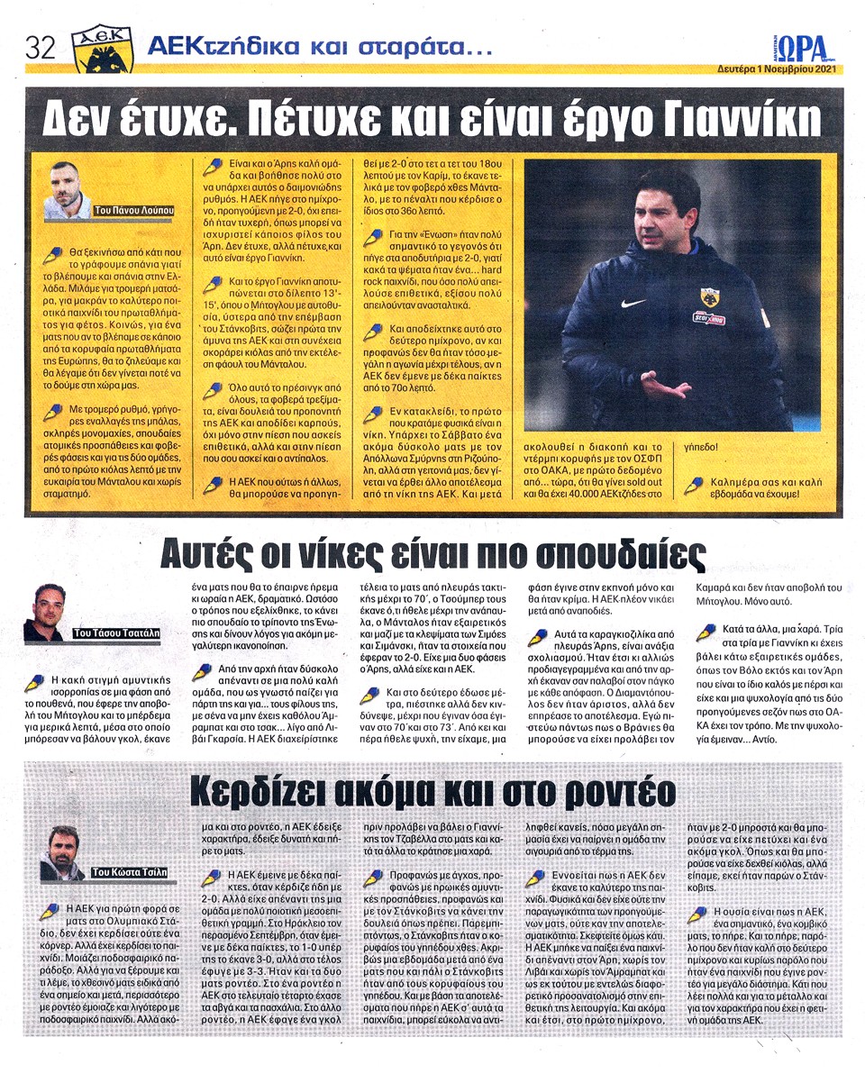 ΑΘΛΗΤΙΚΗ ΩΡΑ ΤΩΝ ΣΠΟΡ - 1 Νοεμβρίου 2021