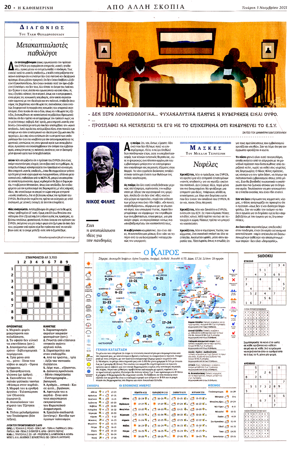 ΚΑΘΗΜΕΡΙΝΗ - 3 Νοεμβρίου 2021