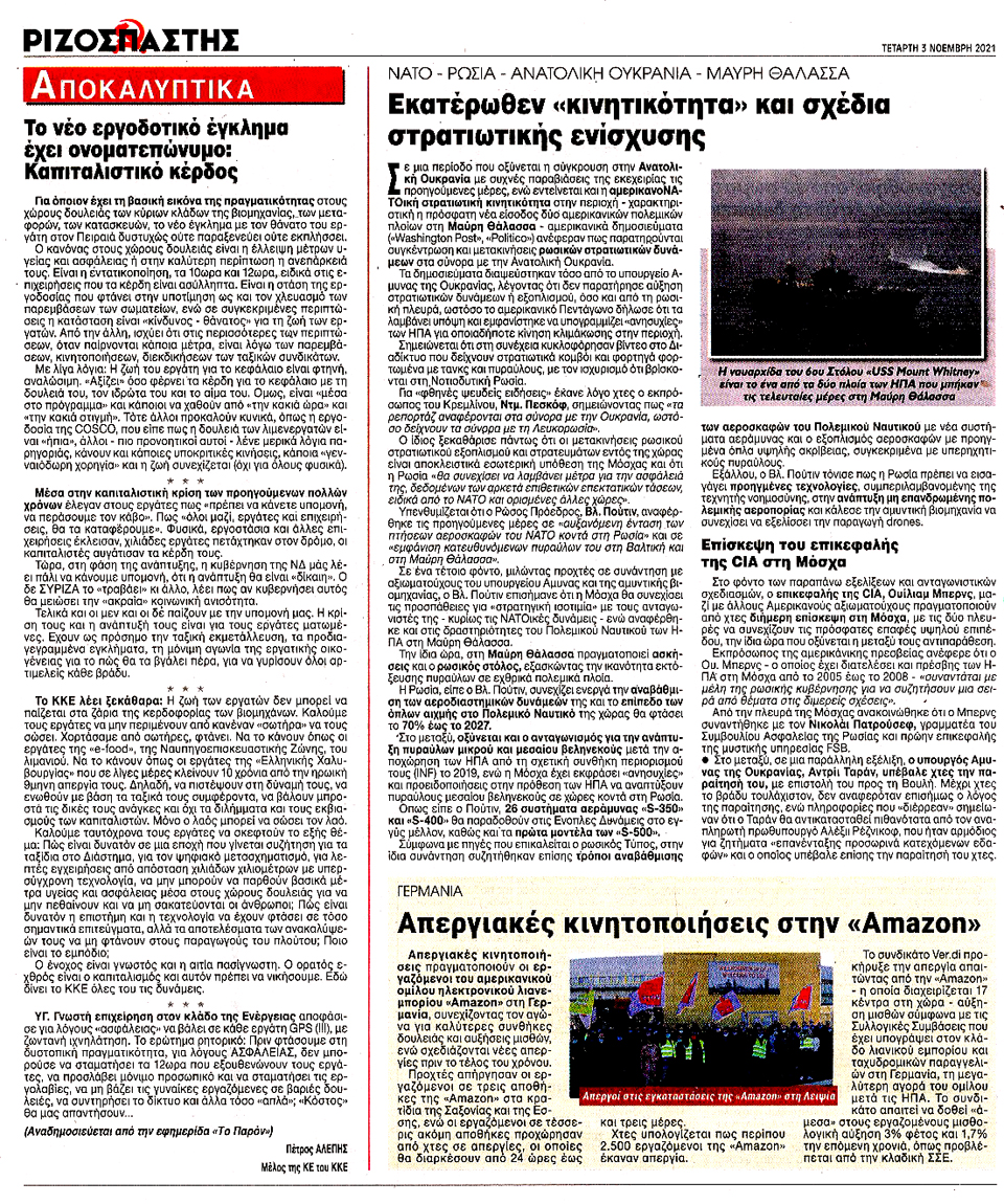 ΡΙΖΟΣΠΑΣΤΗΣ - 3 Νοεμβρίου 2021