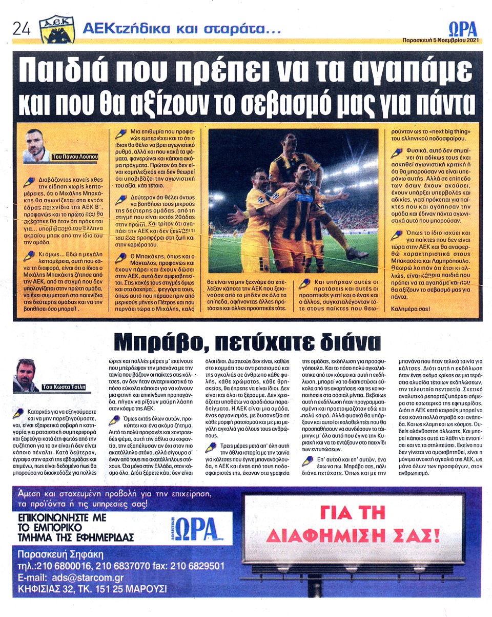 ΑΘΛΗΤΙΚΗ ΩΡΑ ΤΩΝ ΣΠΟΡ - 5 Νοεμβρίου 2021