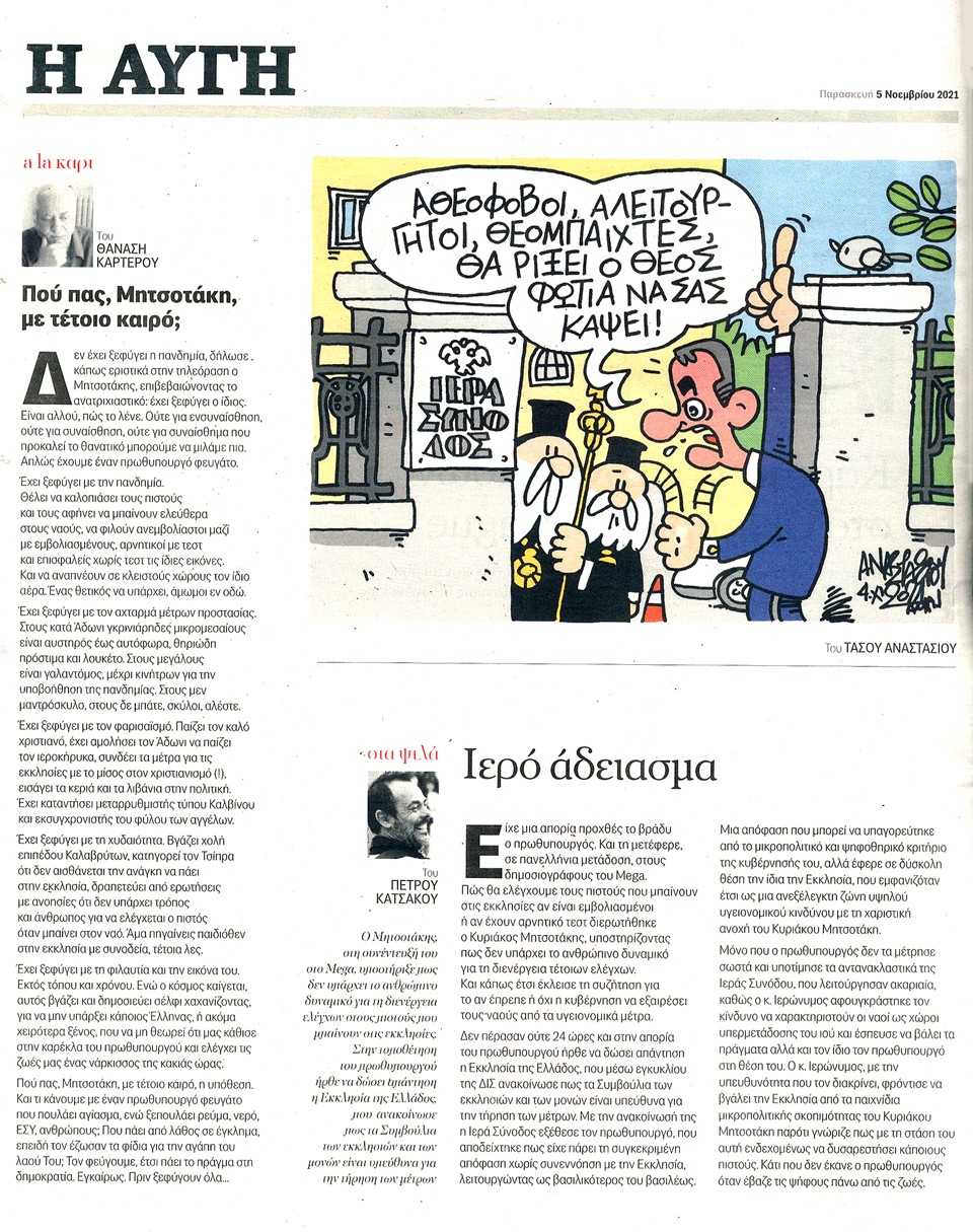 Η ΑΥΓΗ - 5 Νοεμβρίου 2021