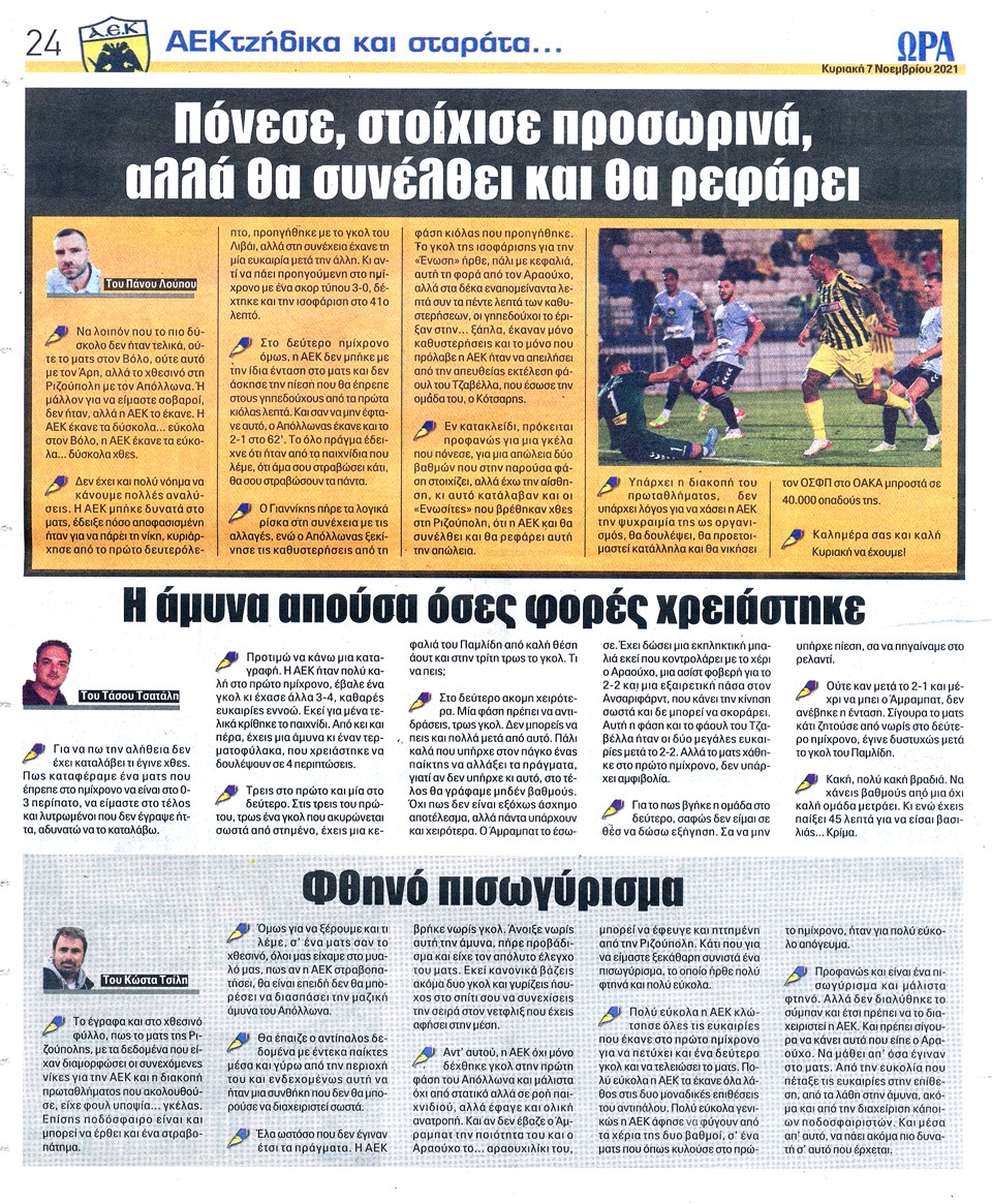 ΑΘΛΗΤΙΚΗ ΩΡΑ ΤΩΝ ΣΠΟΡ - 7 Νοεμβρίου 2021