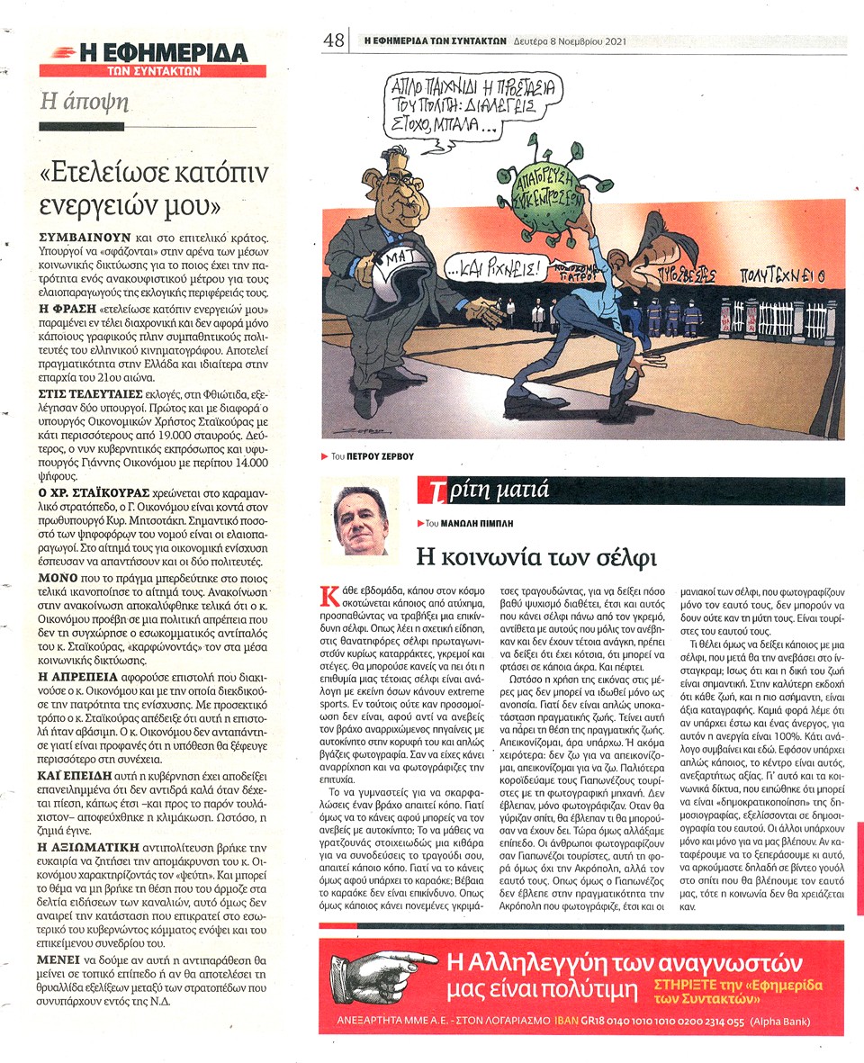 Η ΕΦΗΜΕΡΙΔΑ ΤΩΝ ΣΥΝΤΑΚΤΩΝ - 8 Νοεμβρίου 2021