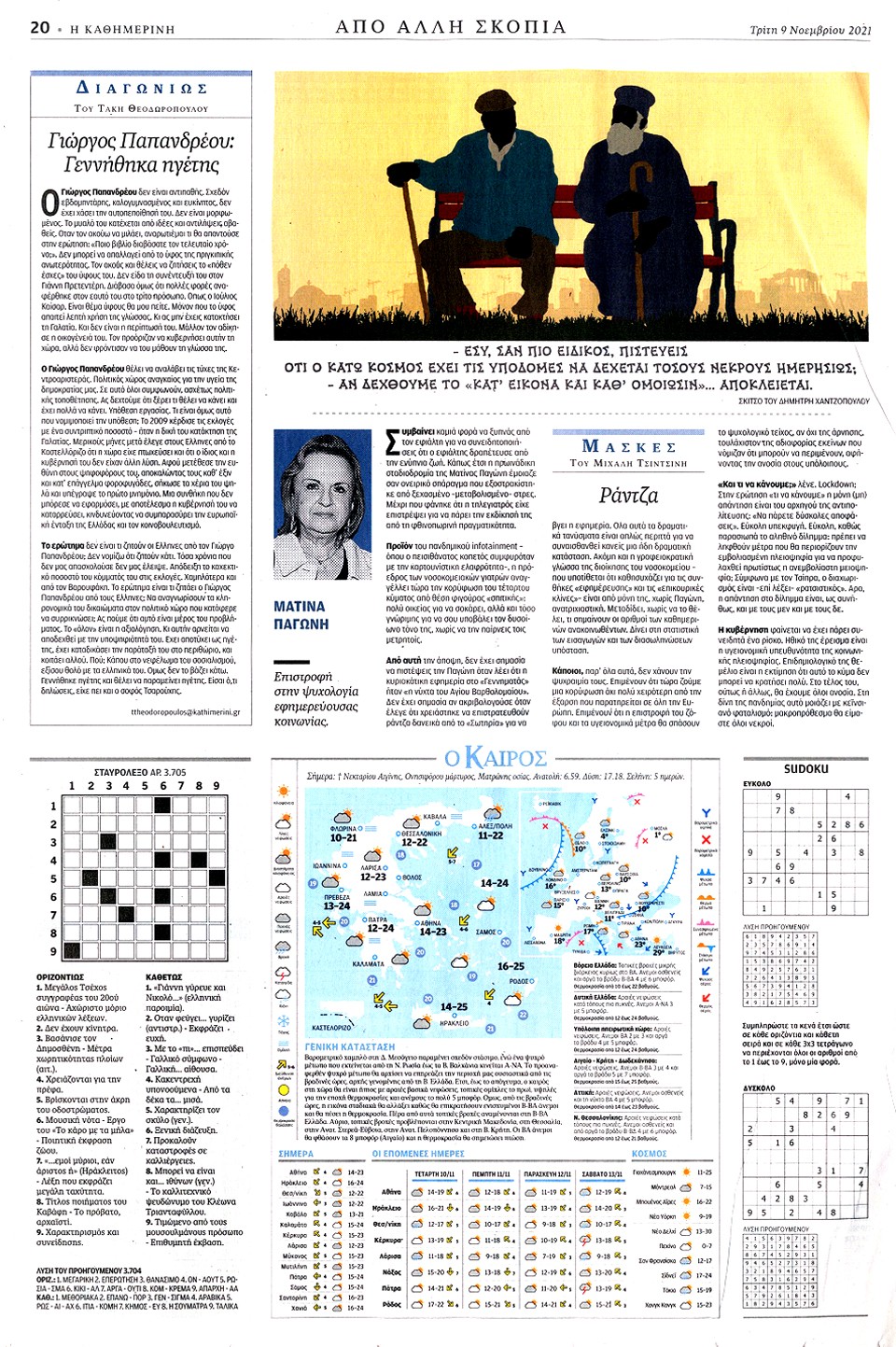 ΚΑΘΗΜΕΡΙΝΗ - 9 Νοεμβρίου 2021