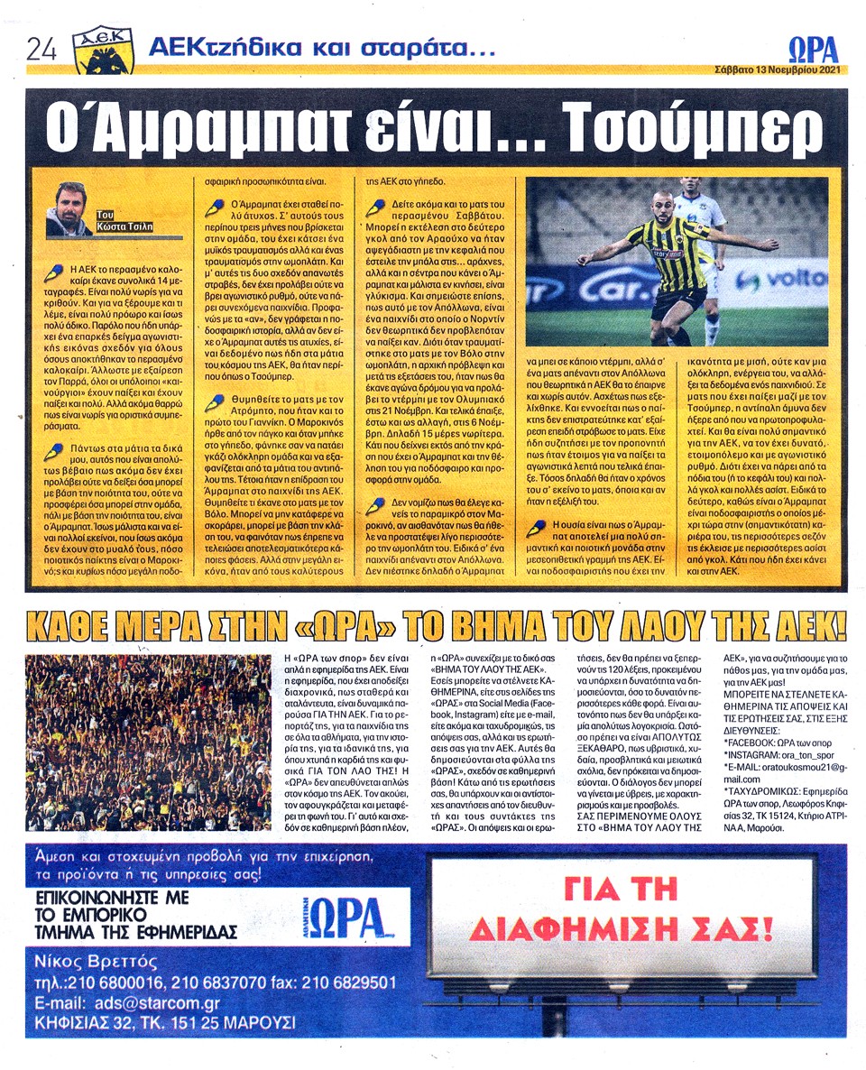 ΑΘΛΗΤΙΚΗ ΩΡΑ ΤΩΝ ΣΠΟΡ - 13 Νοεμβρίου 2021