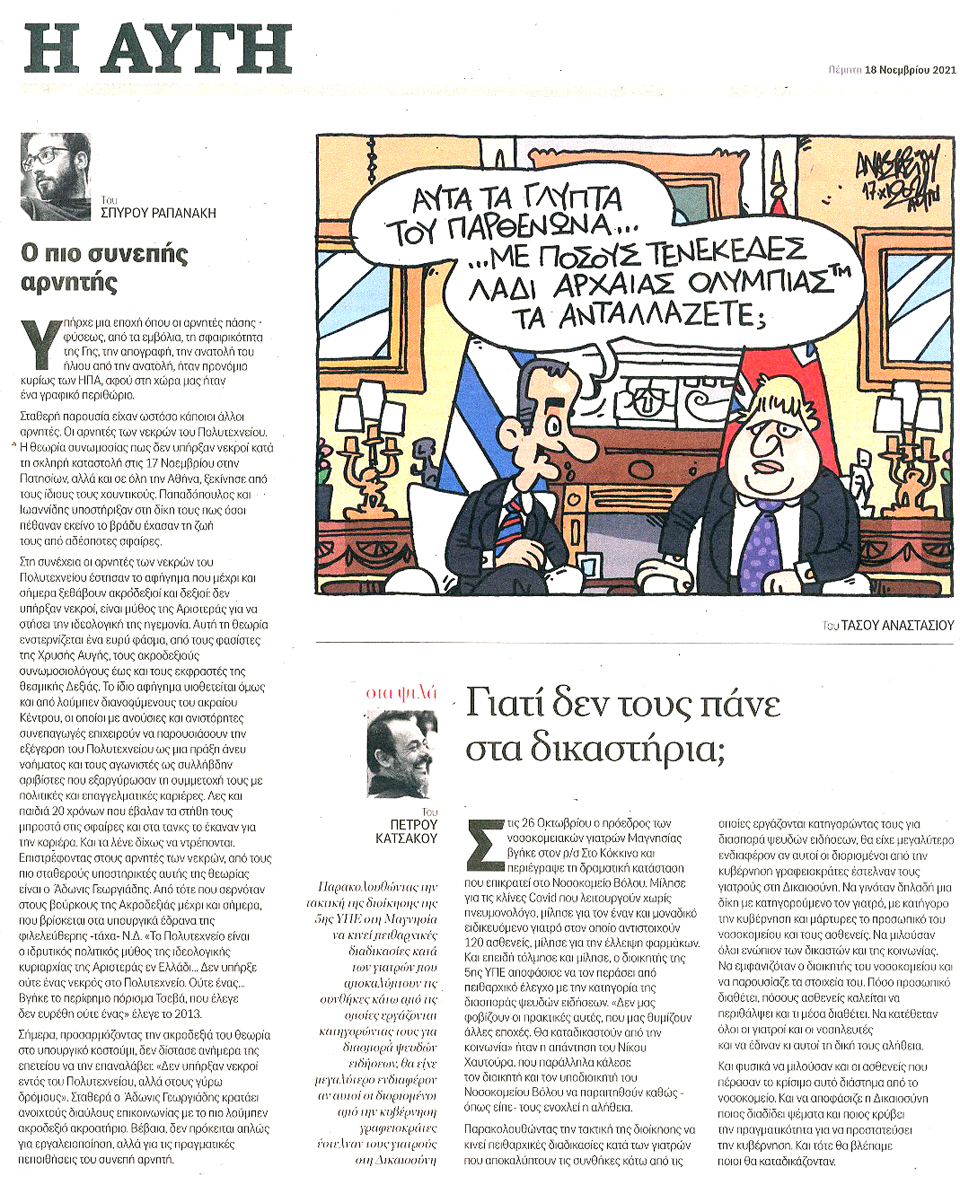 Η ΑΥΓΗ - 18 Νοεμβρίου 2021