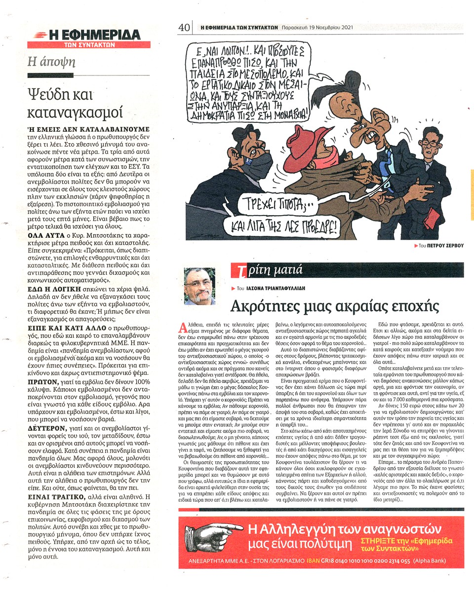 Η ΕΦΗΜΕΡΙΔΑ ΤΩΝ ΣΥΝΤΑΚΤΩΝ - 19 Νοεμβρίου 2021