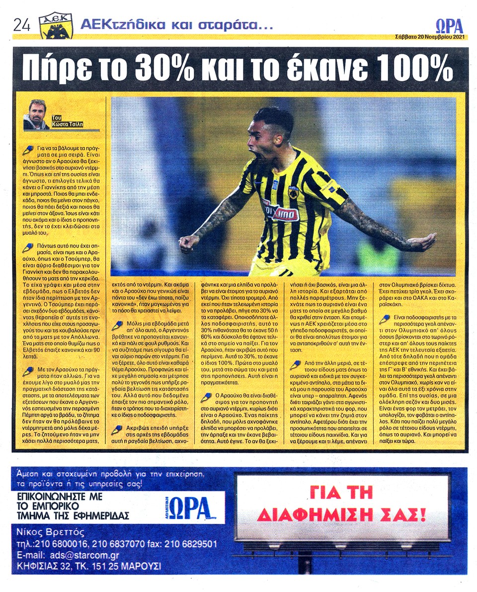 ΑΘΛΗΤΙΚΗ ΩΡΑ ΤΩΝ ΣΠΟΡ - 20 Νοεμβρίου 2021