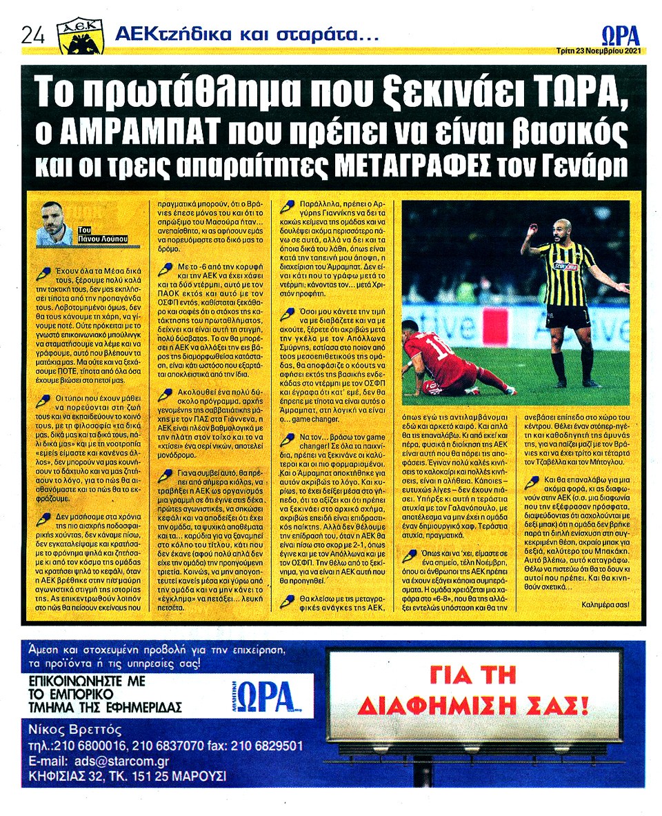ΑΘΛΗΤΙΚΗ ΩΡΑ ΤΩΝ ΣΠΟΡ - 23 Νοεμβρίου 2021
