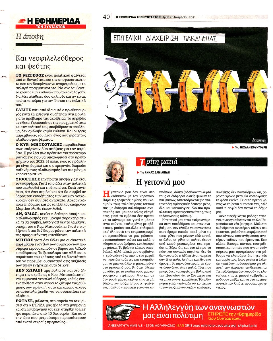 Η ΕΦΗΜΕΡΙΔΑ ΤΩΝ ΣΥΝΤΑΚΤΩΝ - 23 Νοεμβρίου 2021