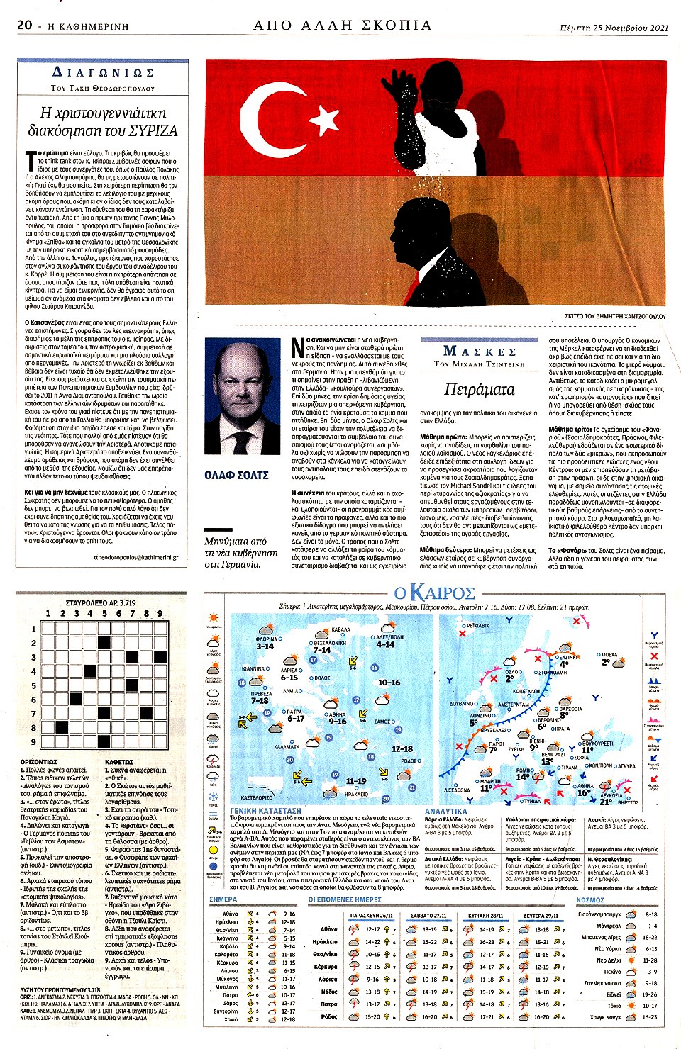 ΚΑΘΗΜΕΡΙΝΗ - 25 Νοεμβρίου 2021