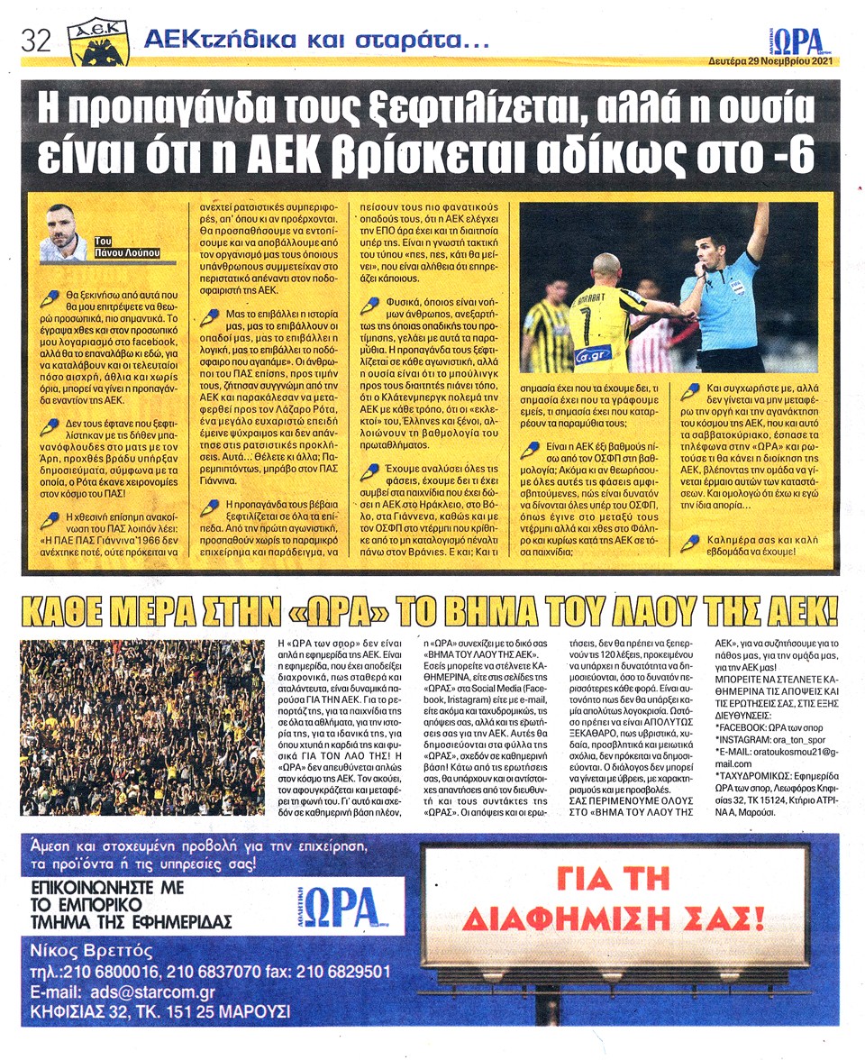 ΑΘΛΗΤΙΚΗ ΩΡΑ ΤΩΝ ΣΠΟΡ - 29 Νοεμβρίου 2021