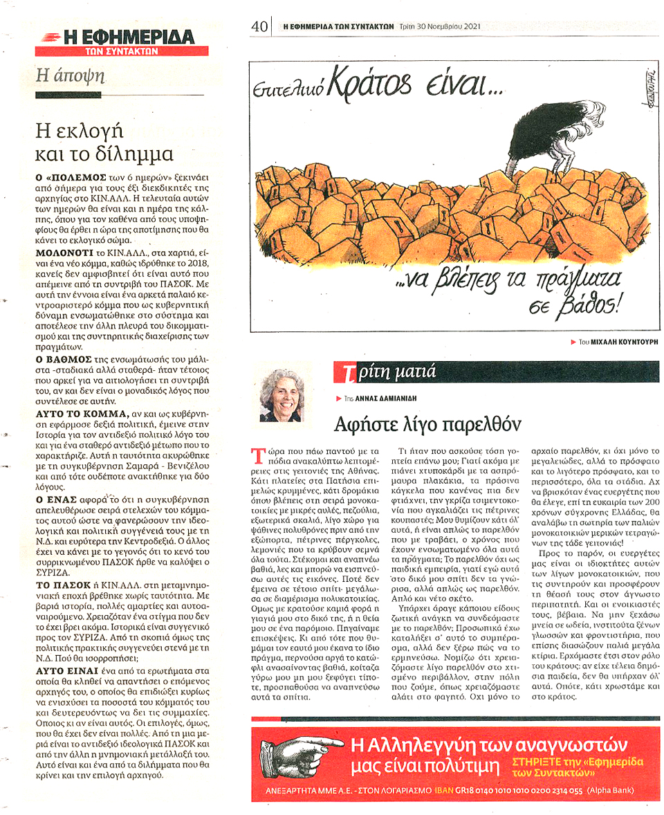 Η ΕΦΗΜΕΡΙΔΑ ΤΩΝ ΣΥΝΤΑΚΤΩΝ - 30 Νοεμβρίου 2021