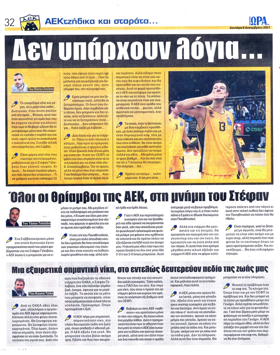 ΑΘΛΗΤΙΚΗ ΩΡΑ ΤΩΝ ΣΠΟΡ - 6 Δεκεμβρίου 2021