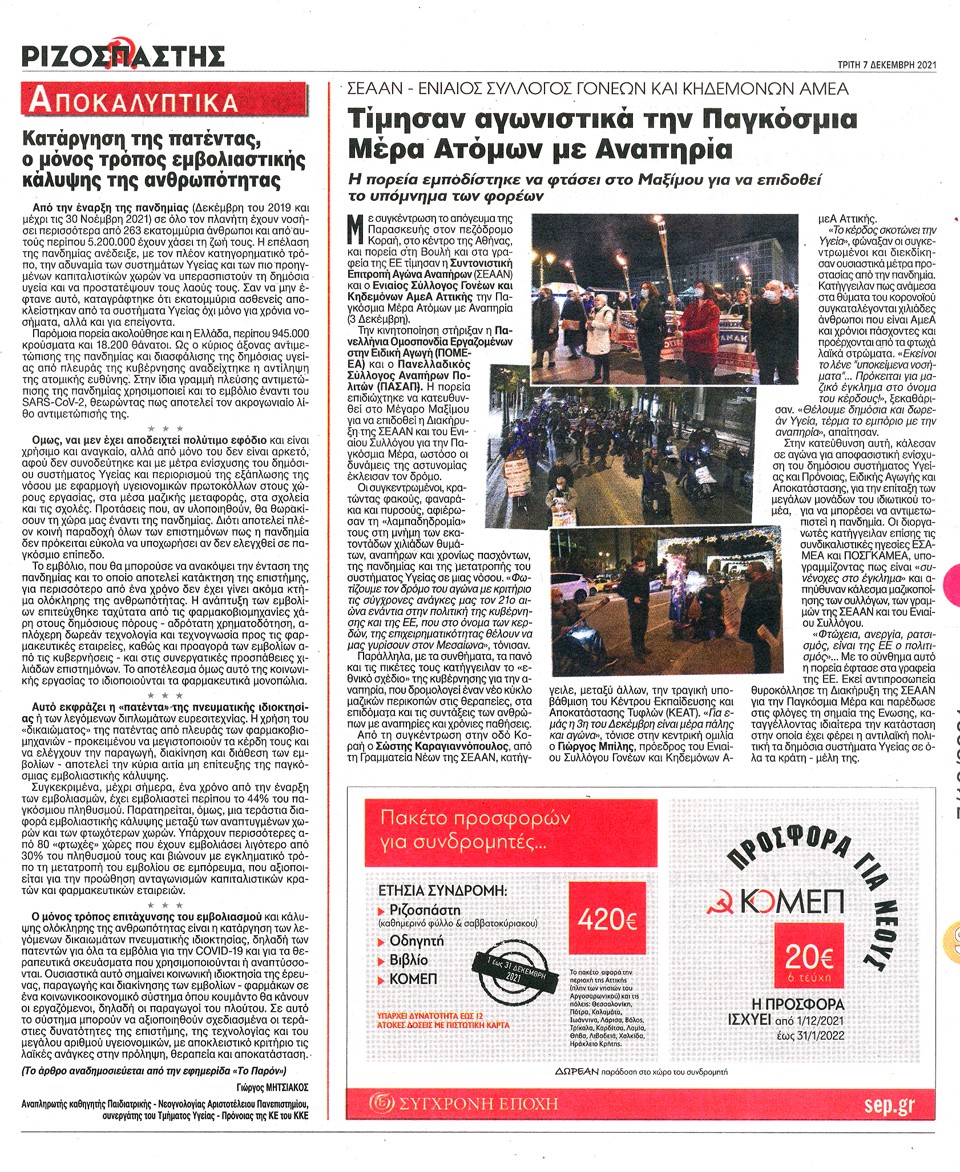 ΡΙΖΟΣΠΑΣΤΗΣ - 7 Δεκεμβρίου 2021