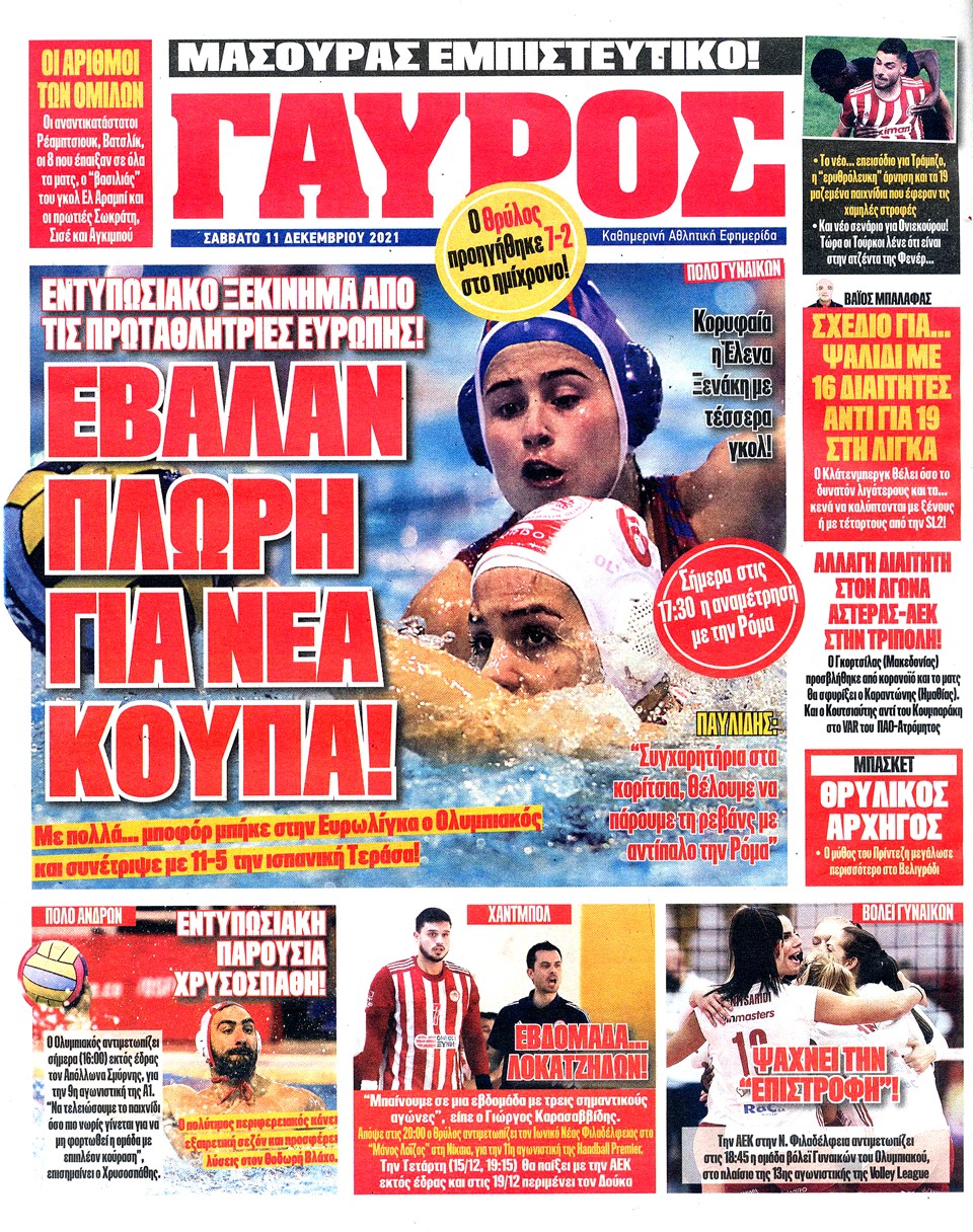 ΠΡΩΤΑΘΛΗΤΗΣ - 11 Δεκεμβρίου 2021