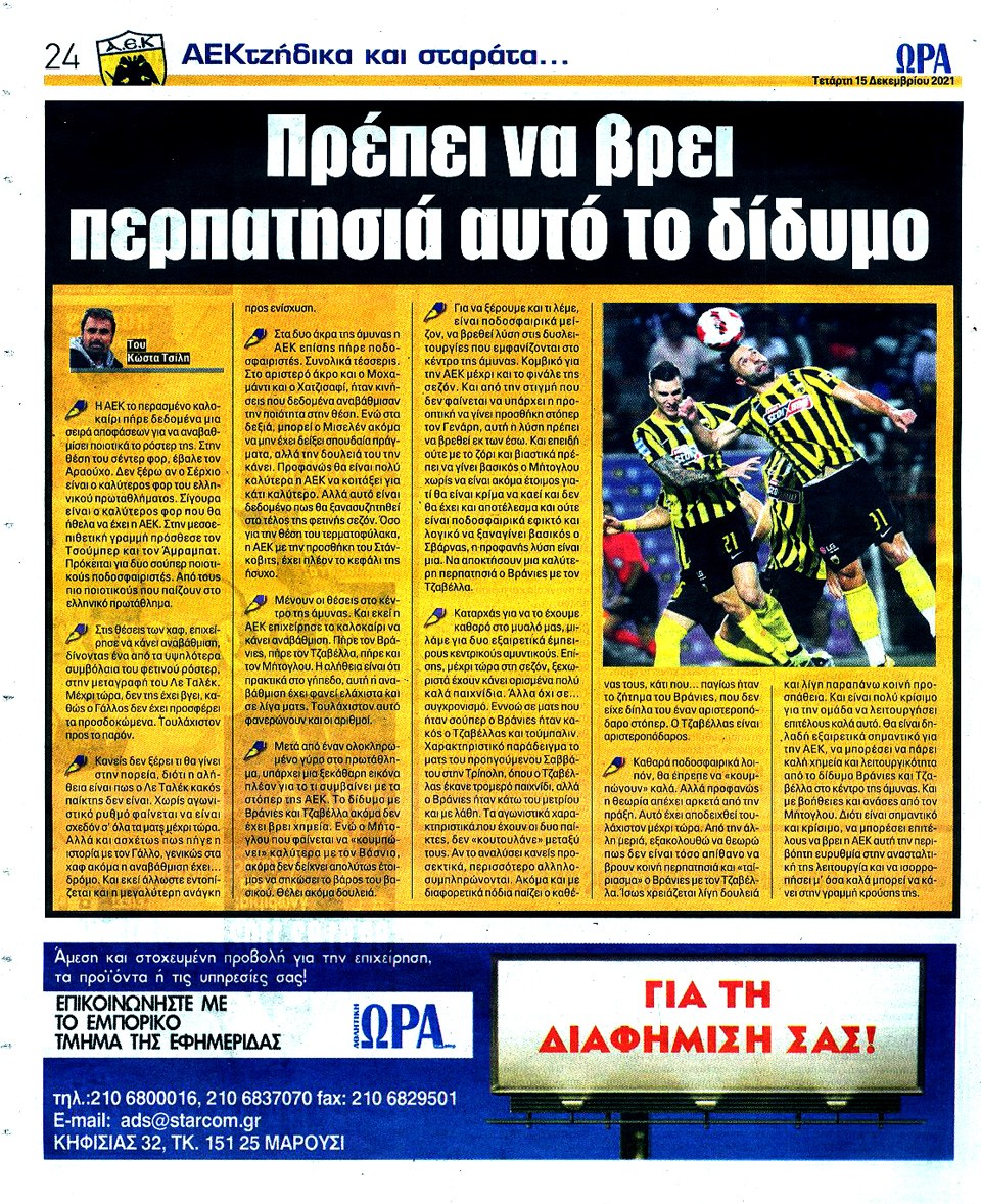 ΑΘΛΗΤΙΚΗ ΩΡΑ ΤΩΝ ΣΠΟΡ - 15 Δεκεμβρίου 2021