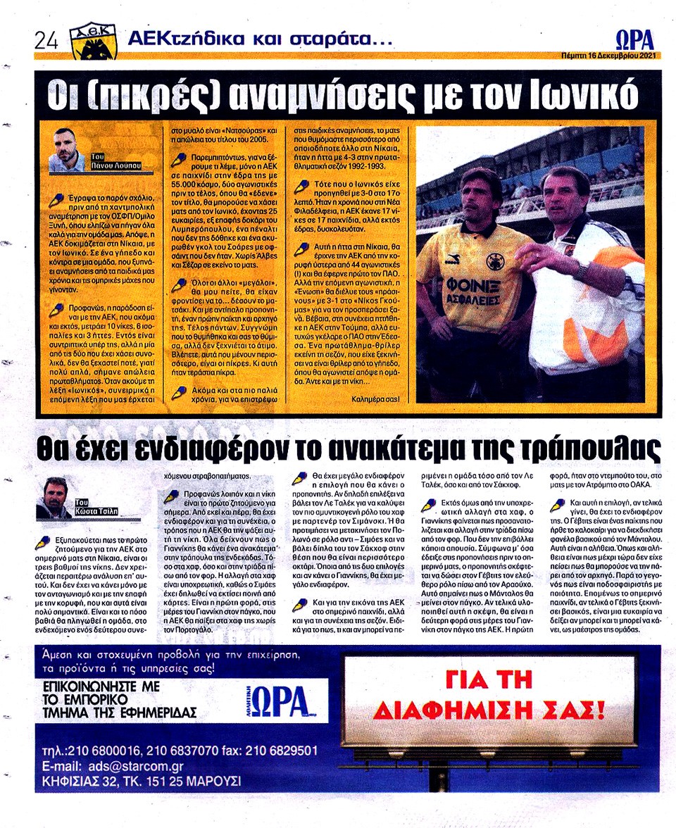ΑΘΛΗΤΙΚΗ ΩΡΑ ΤΩΝ ΣΠΟΡ - 16 Δεκεμβρίου 2021
