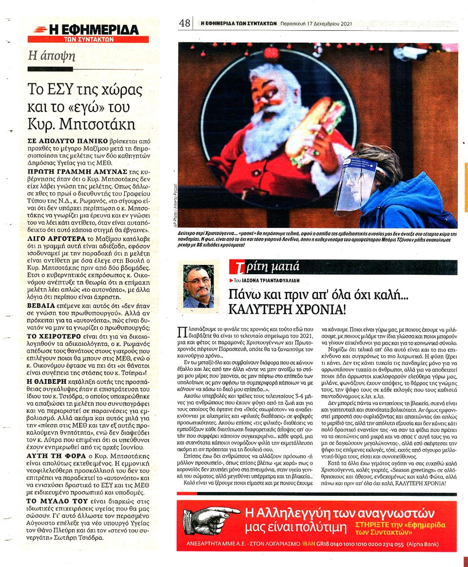 Η ΕΦΗΜΕΡΙΔΑ ΤΩΝ ΣΥΝΤΑΚΤΩΝ - 17 Δεκεμβρίου 2021