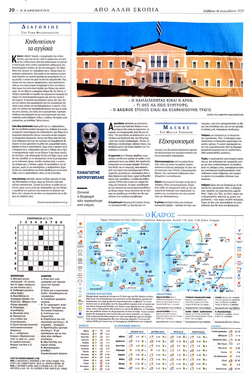 ΚΑΘΗΜΕΡΙΝΗ - 18 Δεκεμβρίου 2021