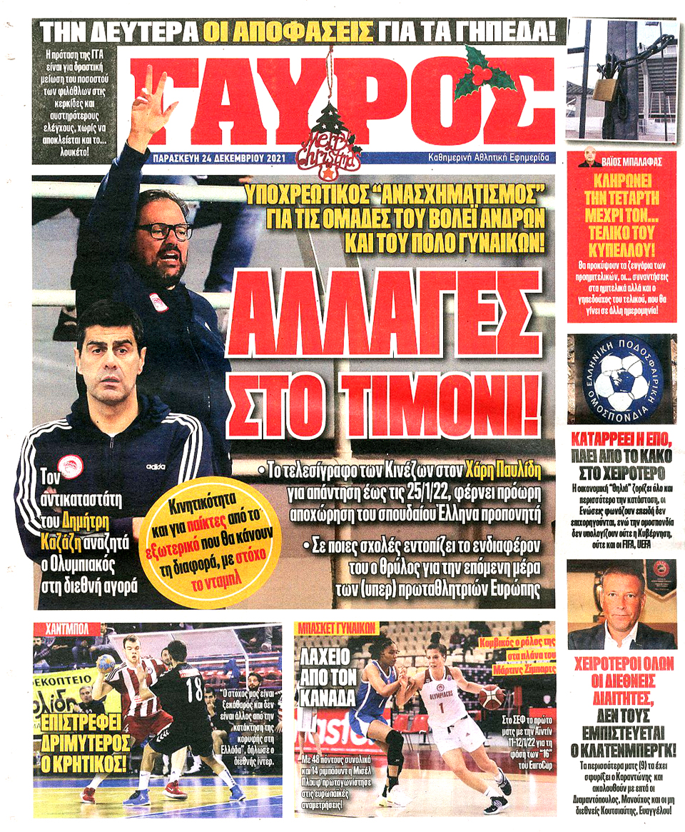 ΠΡΩΤΑΘΛΗΤΗΣ - 24 Δεκεμβρίου 2021