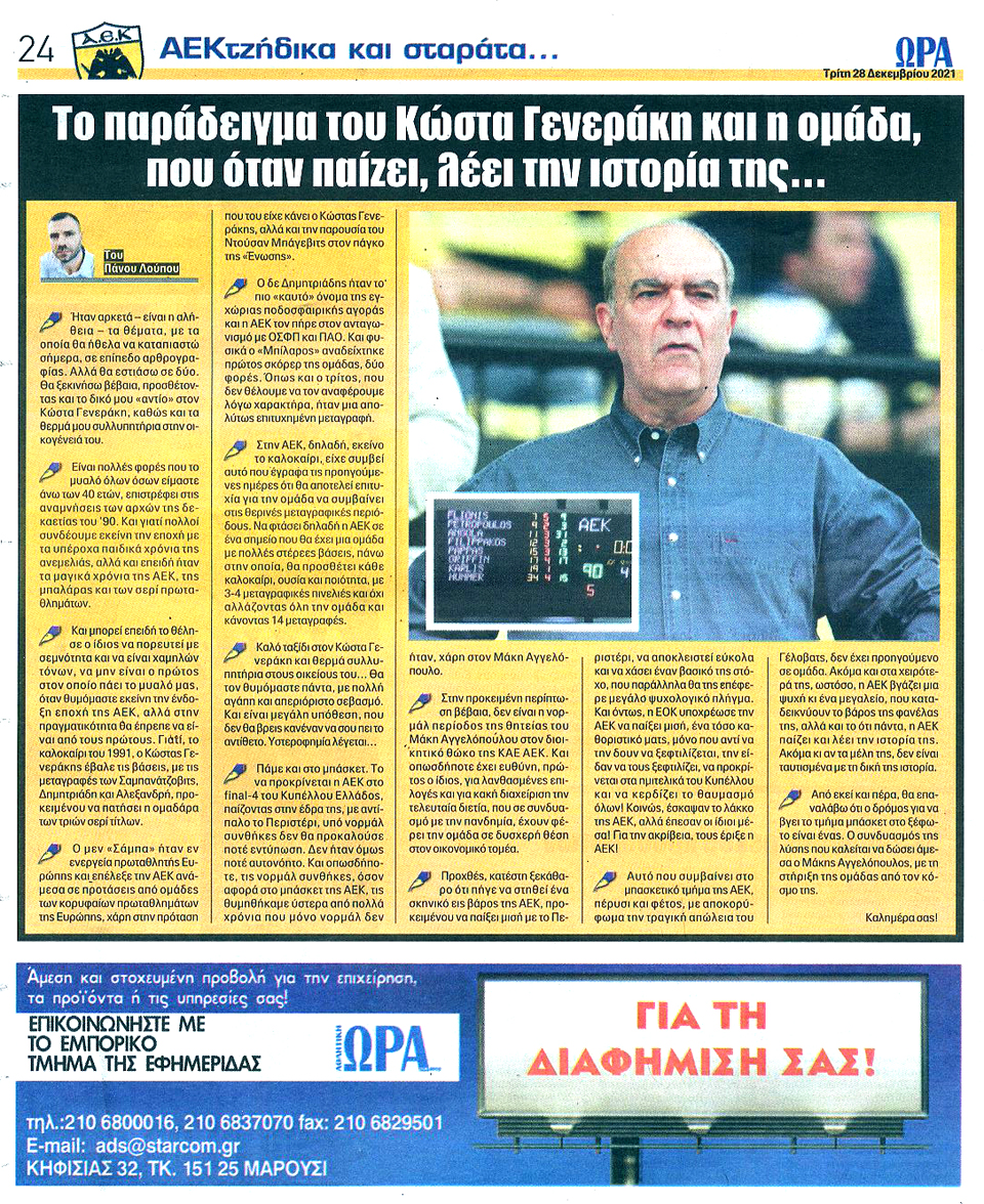 ΑΘΛΗΤΙΚΗ ΩΡΑ ΤΩΝ ΣΠΟΡ - 28 Δεκεμβρίου 2021