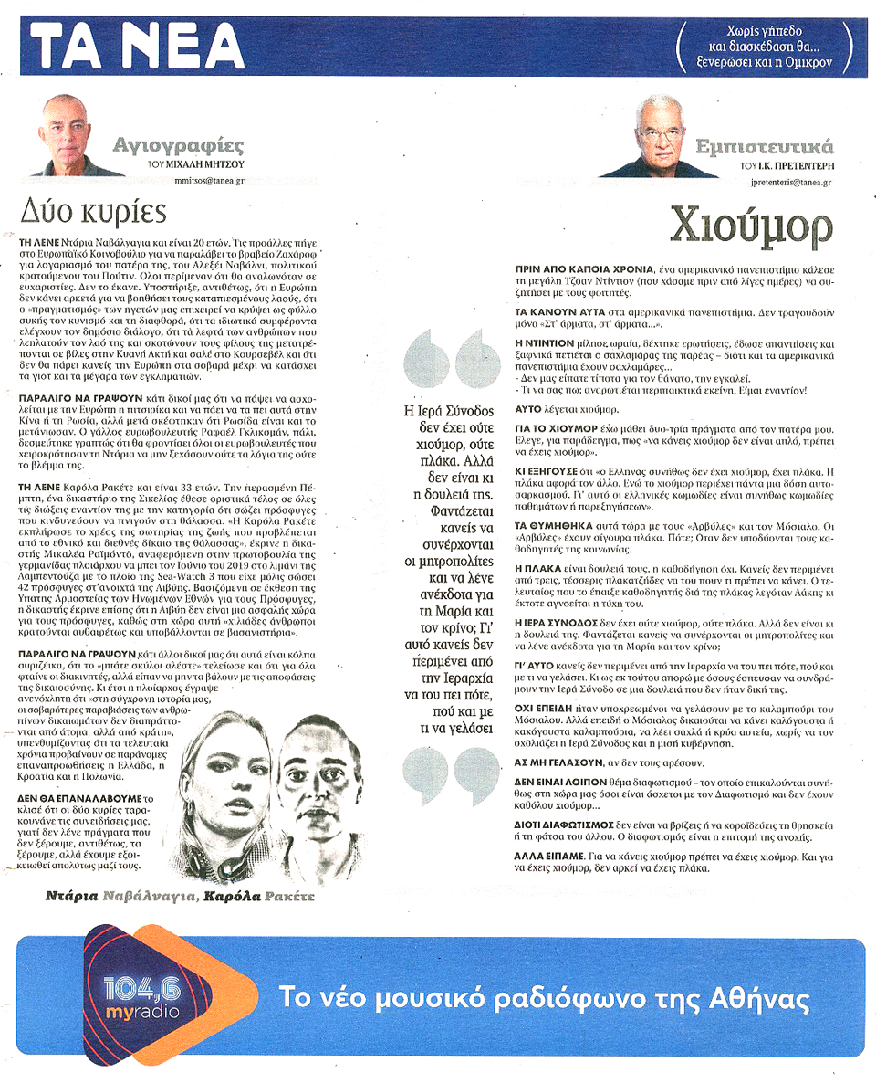 ΤΑ ΝΕΑ - 28 Δεκεμβρίου 2021