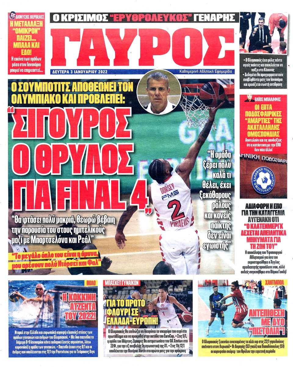 ΠΡΩΤΑΘΛΗΤΗΣ - 3 Ιανουαρίου 2022