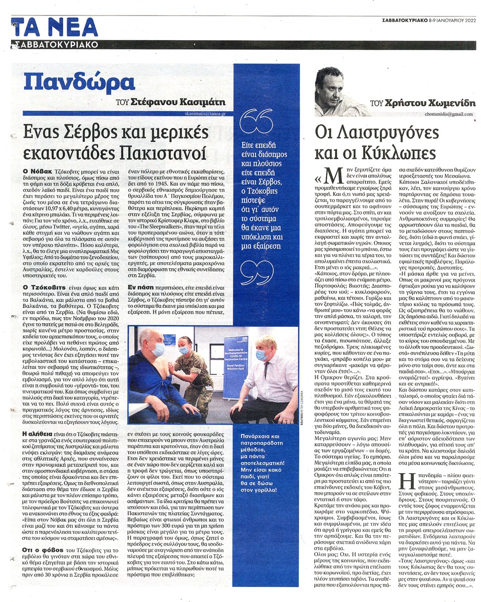 ΤΑ ΝΕΑ - 8 Ιανουαρίου 2022