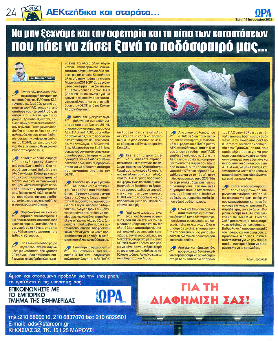 ΑΘΛΗΤΙΚΗ ΩΡΑ ΤΩΝ ΣΠΟΡ - 11 Ιανουαρίου 2022