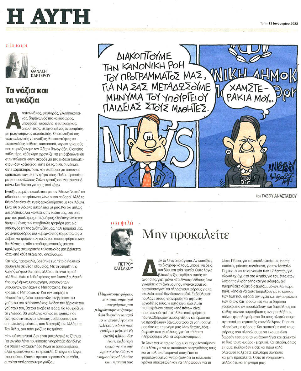 Η ΑΥΓΗ - 11 Ιανουαρίου 2022