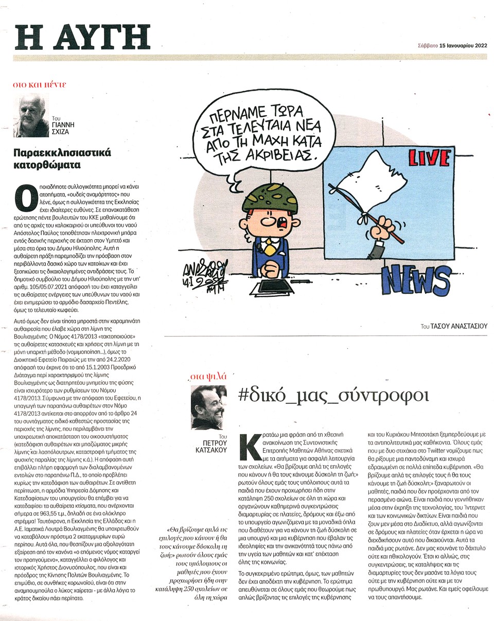 Η ΑΥΓΗ - 15 Ιανουαρίου 2022
