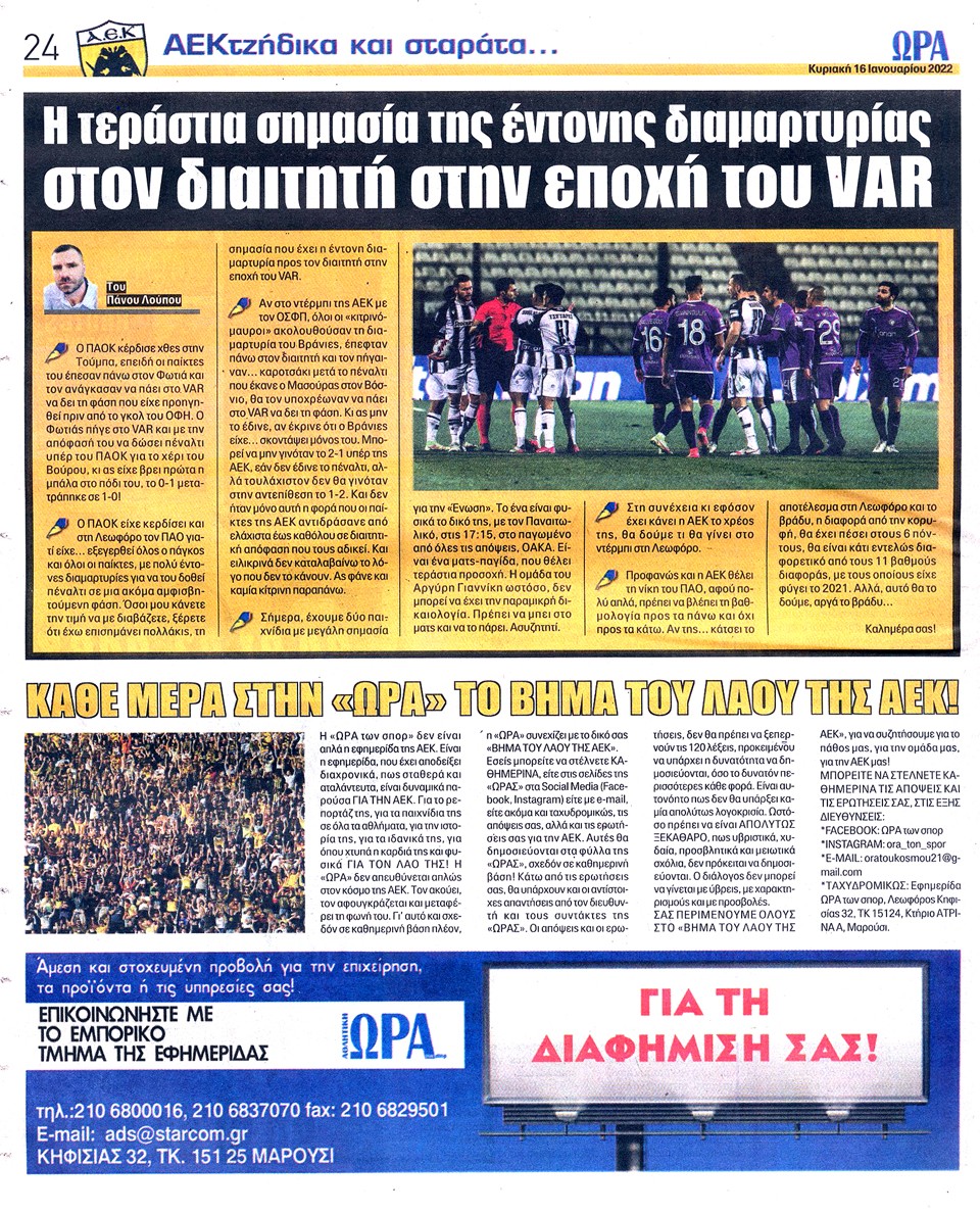 ΑΘΛΗΤΙΚΗ ΩΡΑ ΤΩΝ ΣΠΟΡ - 16 Ιανουαρίου 2022
