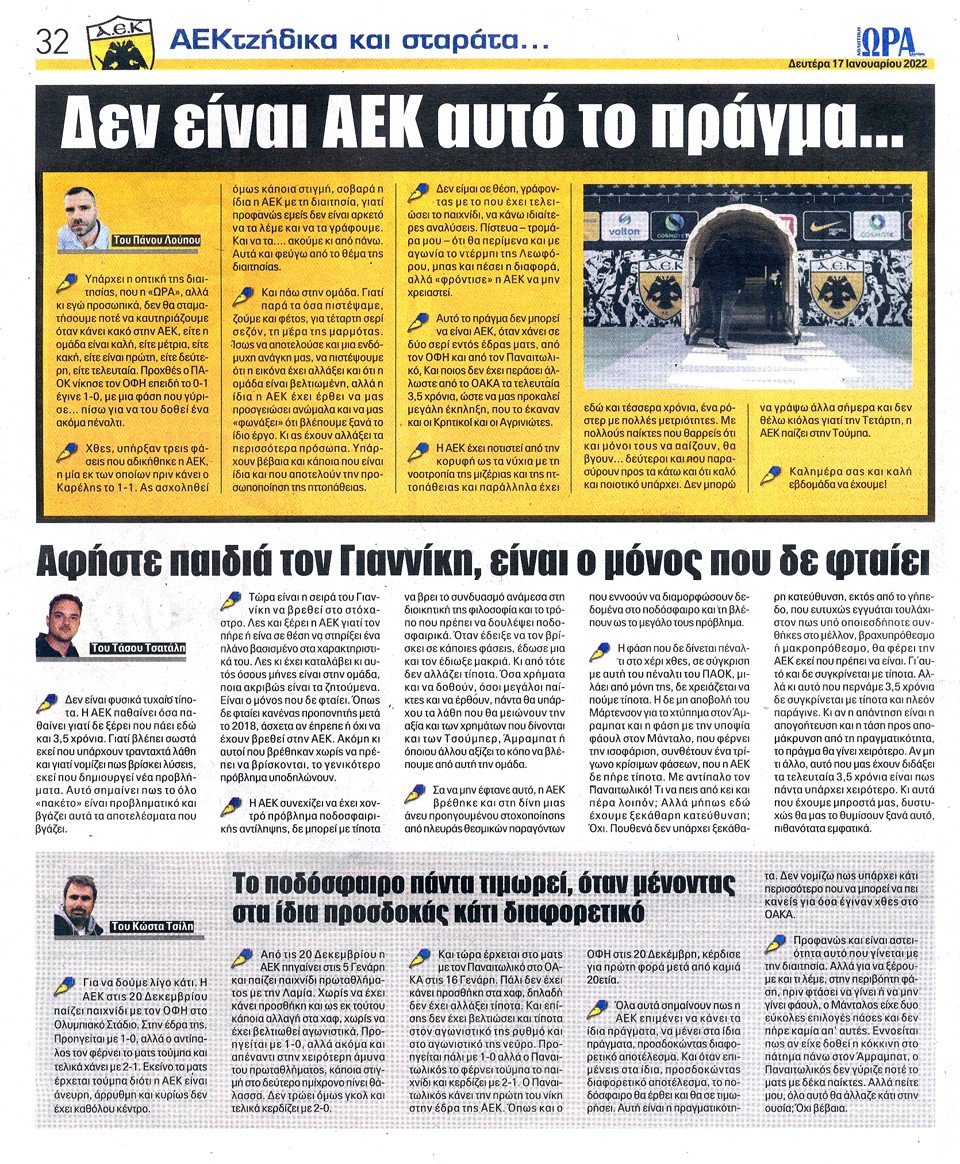 ΑΘΛΗΤΙΚΗ ΩΡΑ ΤΩΝ ΣΠΟΡ - 17 Ιανουαρίου 2022