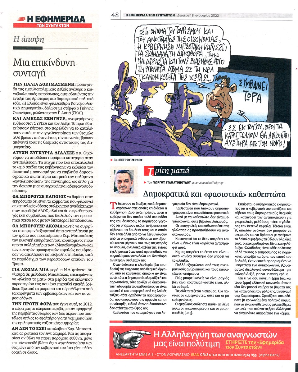 Η ΕΦΗΜΕΡΙΔΑ ΤΩΝ ΣΥΝΤΑΚΤΩΝ - 17 Ιανουαρίου 2022