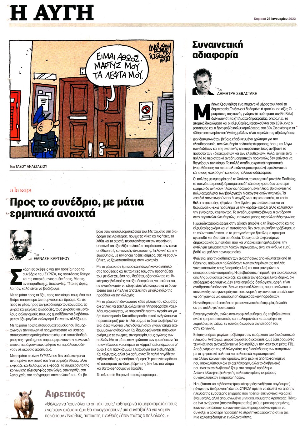 Η ΑΥΓΗ ΤΗΣ ΚΥΡΙΑΚΗΣ - 23 Ιανουαρίου 2022