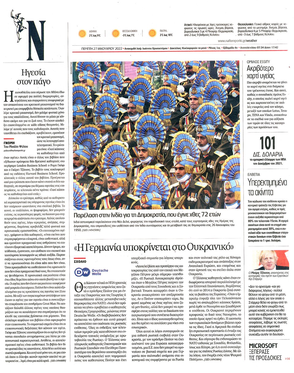 ΝΑΥΤΕΜΠΟΡΙΚΗ - 27 Ιανουαρίου 2022