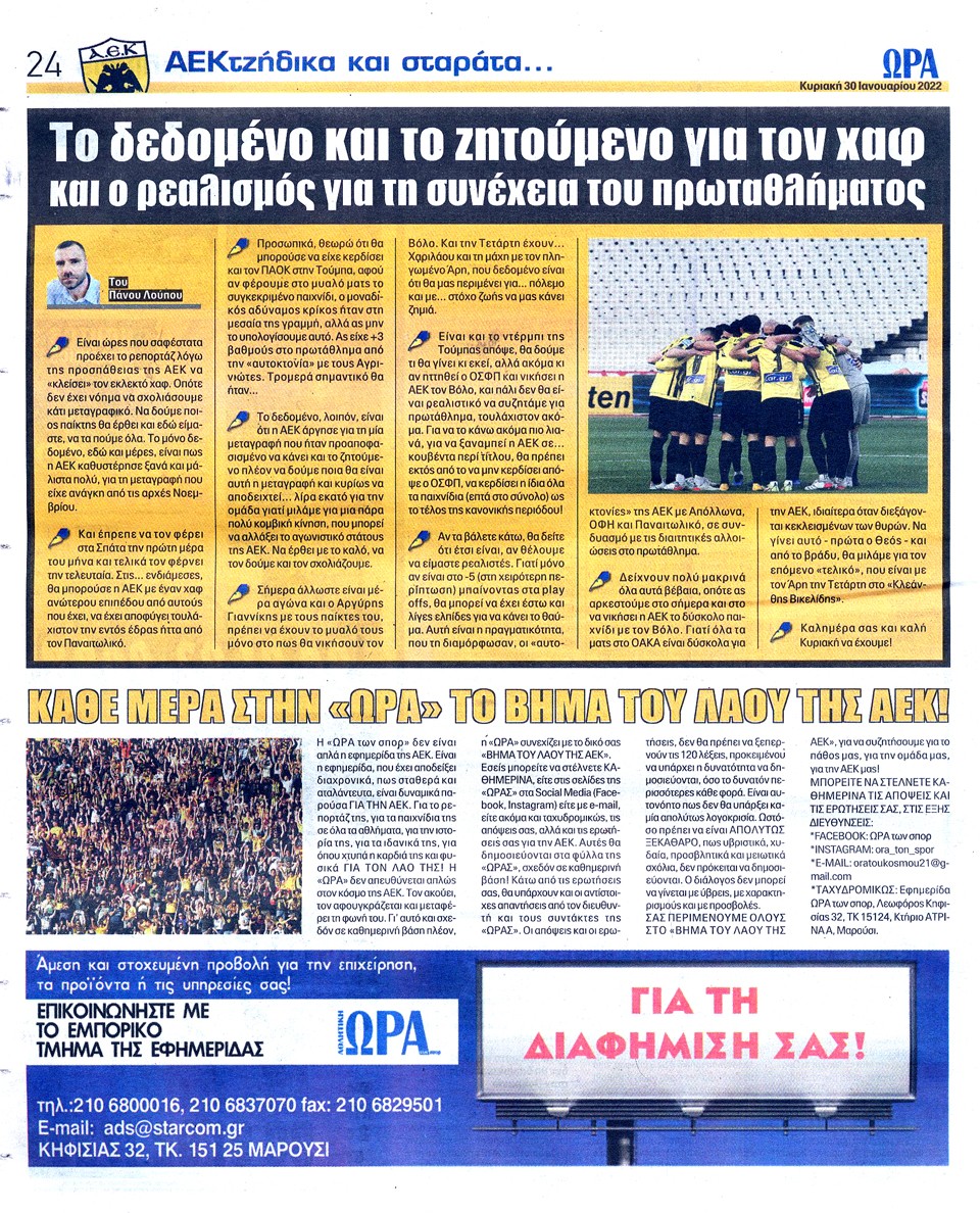 ΑΘΛΗΤΙΚΗ ΩΡΑ ΤΩΝ ΣΠΟΡ - 30 Ιανουαρίου 2022