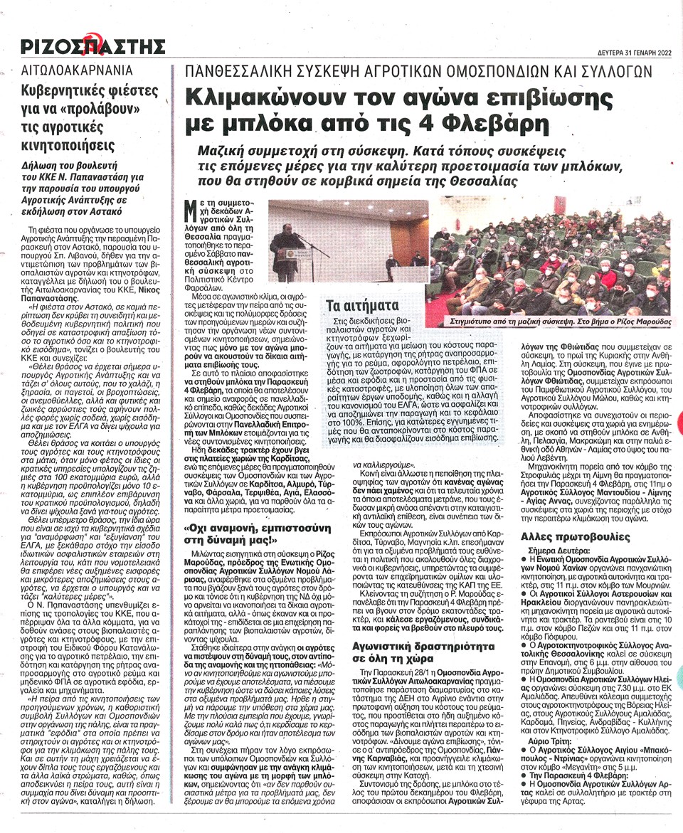 ΡΙΖΟΣΠΑΣΤΗΣ - 31 Ιανουαρίου 2022