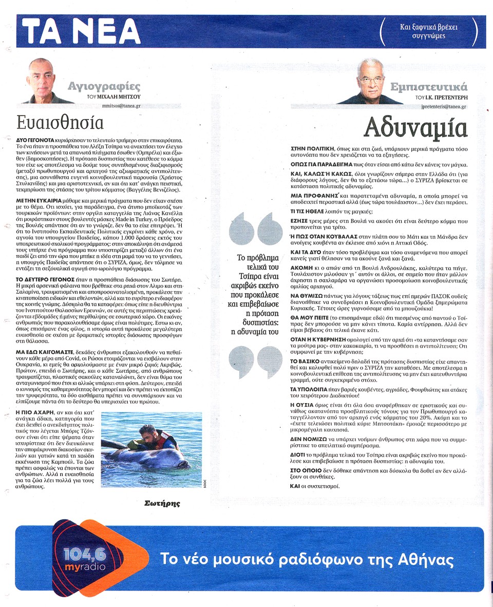 ΤΑ ΝΕΑ - 31 Ιανουαρίου 2022