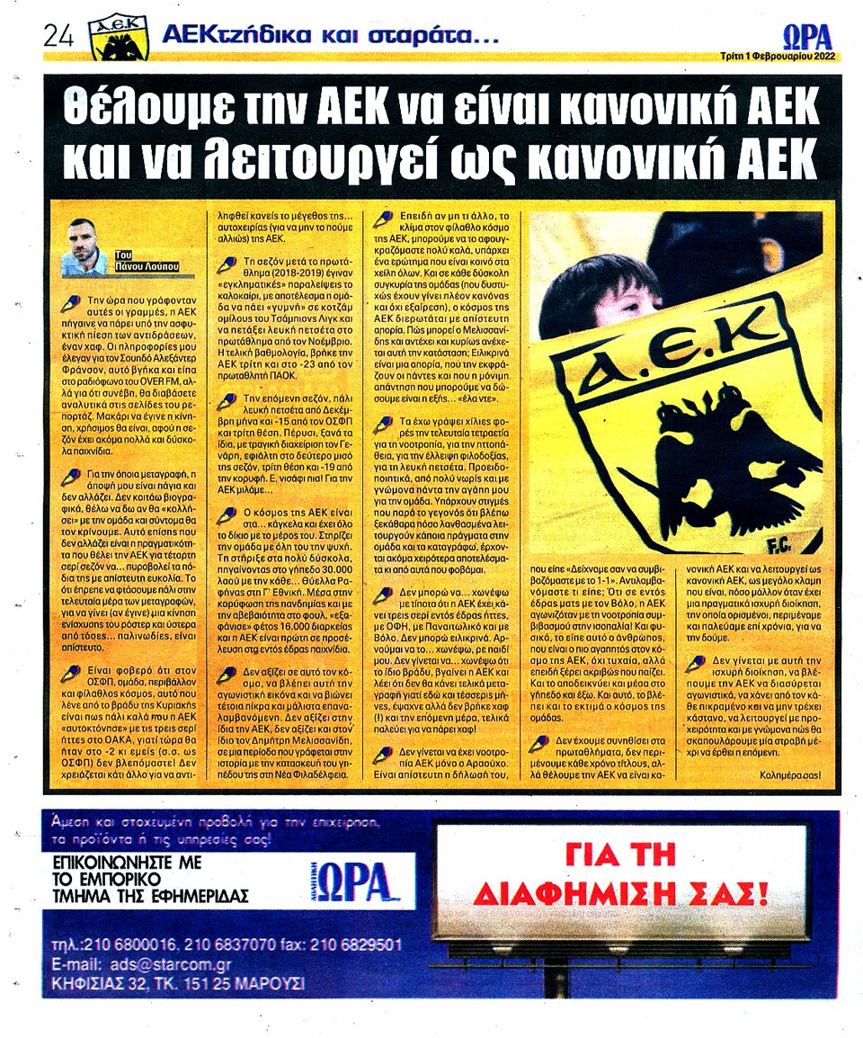 ΑΘΛΗΤΙΚΗ ΩΡΑ ΤΩΝ ΣΠΟΡ - 1 Φεβρουαρίου 2022