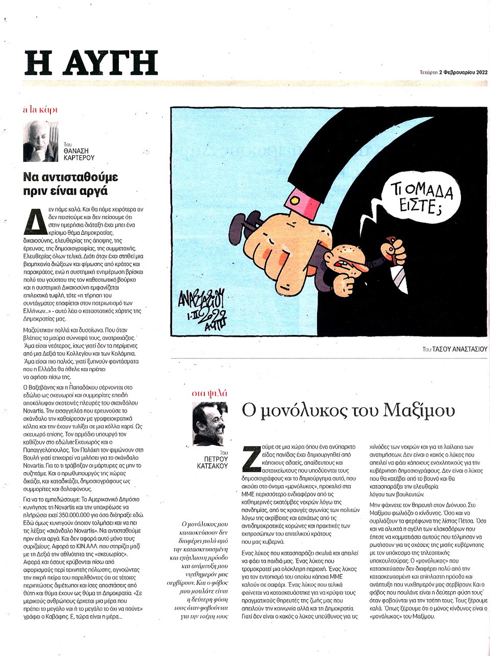Η ΑΥΓΗ - 2 Φεβρουαρίου 2022