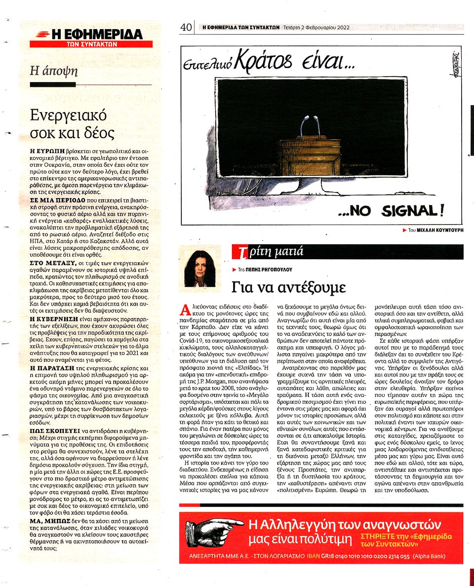 Η ΕΦΗΜΕΡΙΔΑ ΤΩΝ ΣΥΝΤΑΚΤΩΝ - 2 Φεβρουαρίου 2022