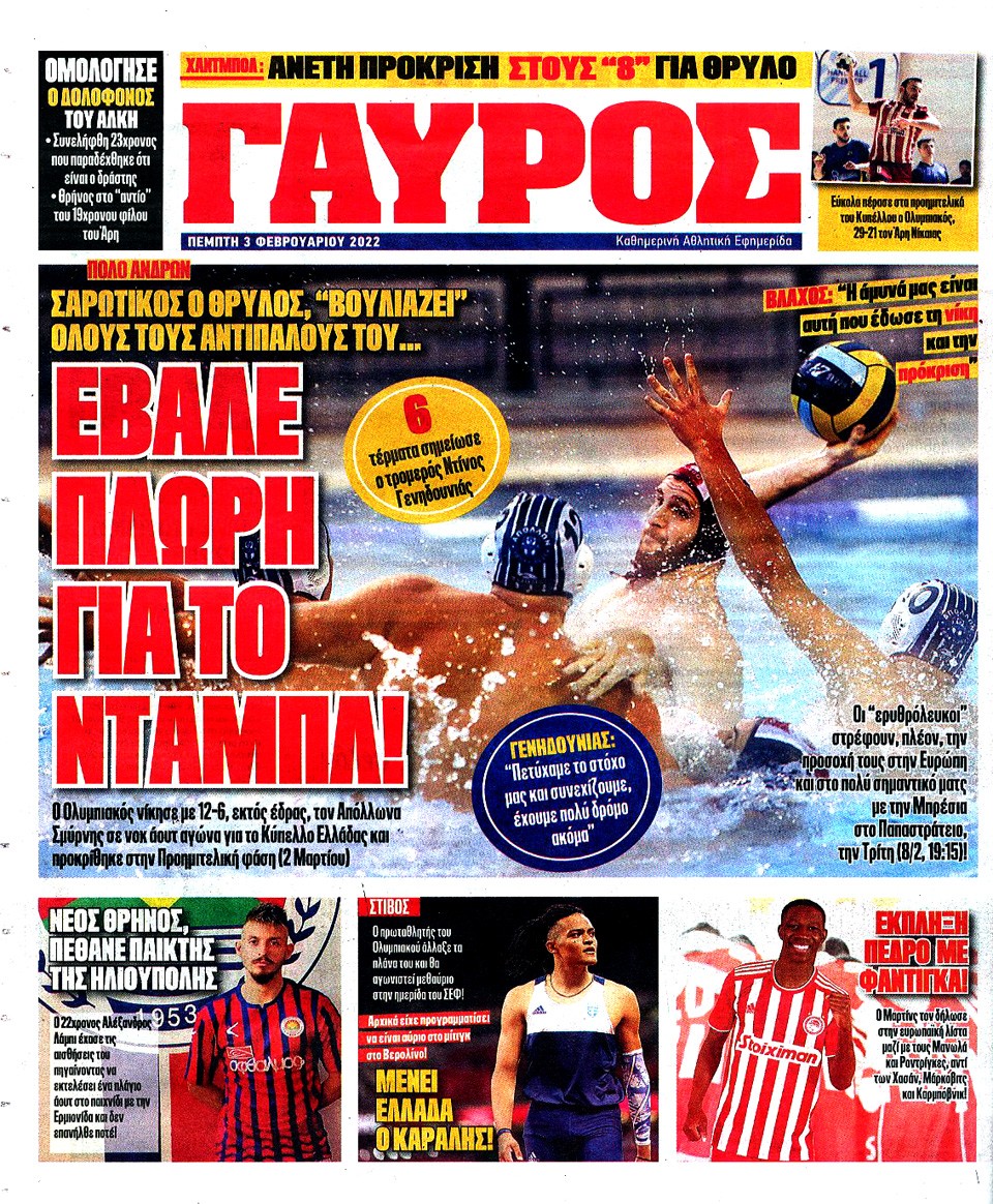 ΠΡΩΤΑΘΛΗΤΗΣ - 3 Φεβρουαρίου 2022