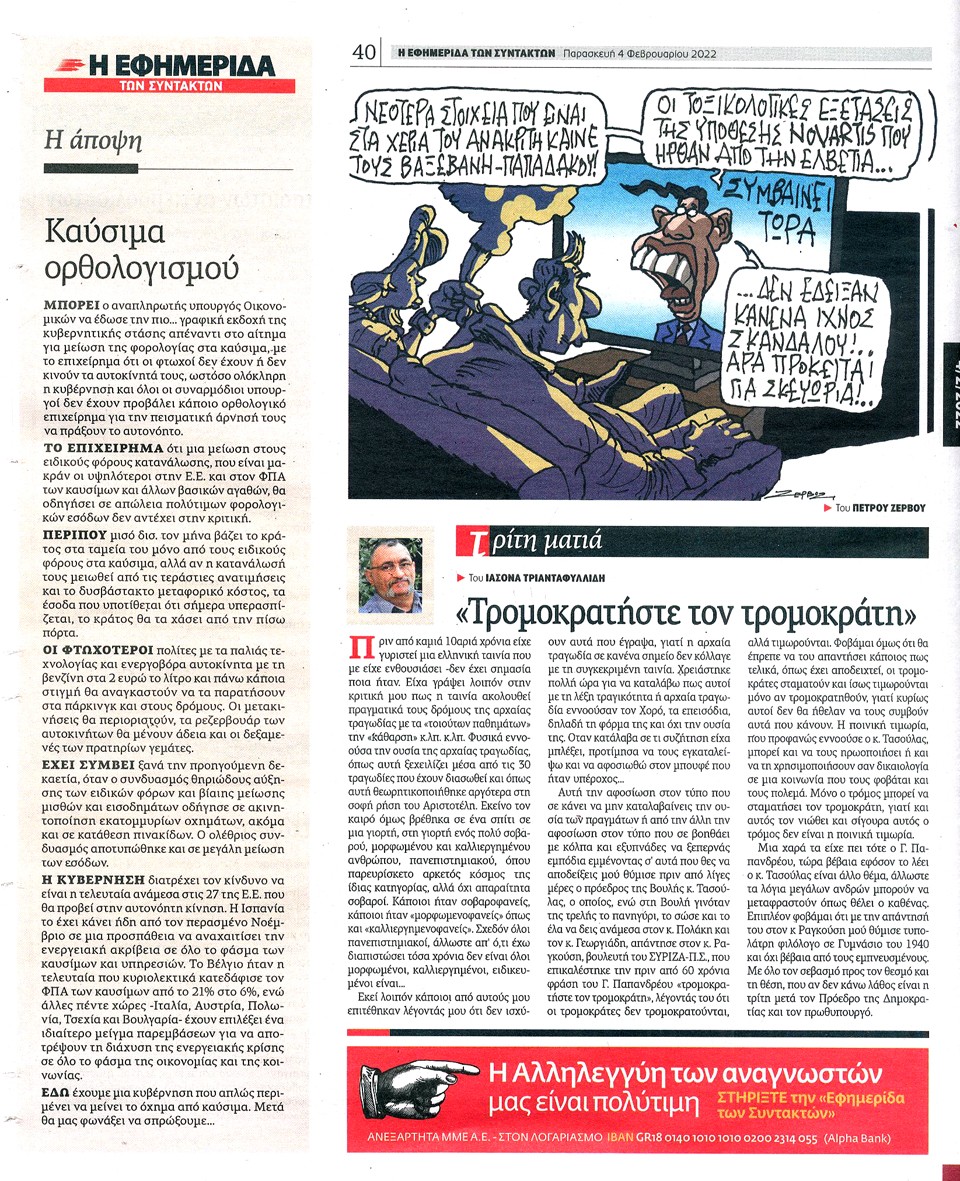 Η ΕΦΗΜΕΡΙΔΑ ΤΩΝ ΣΥΝΤΑΚΤΩΝ - 4 Φεβρουαρίου 2022