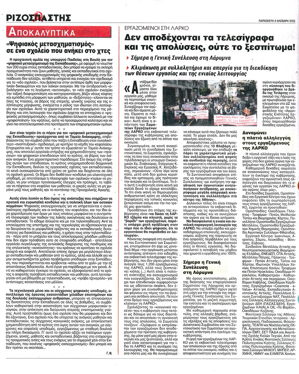 ΡΙΖΟΣΠΑΣΤΗΣ - 4 Φεβρουαρίου 2022