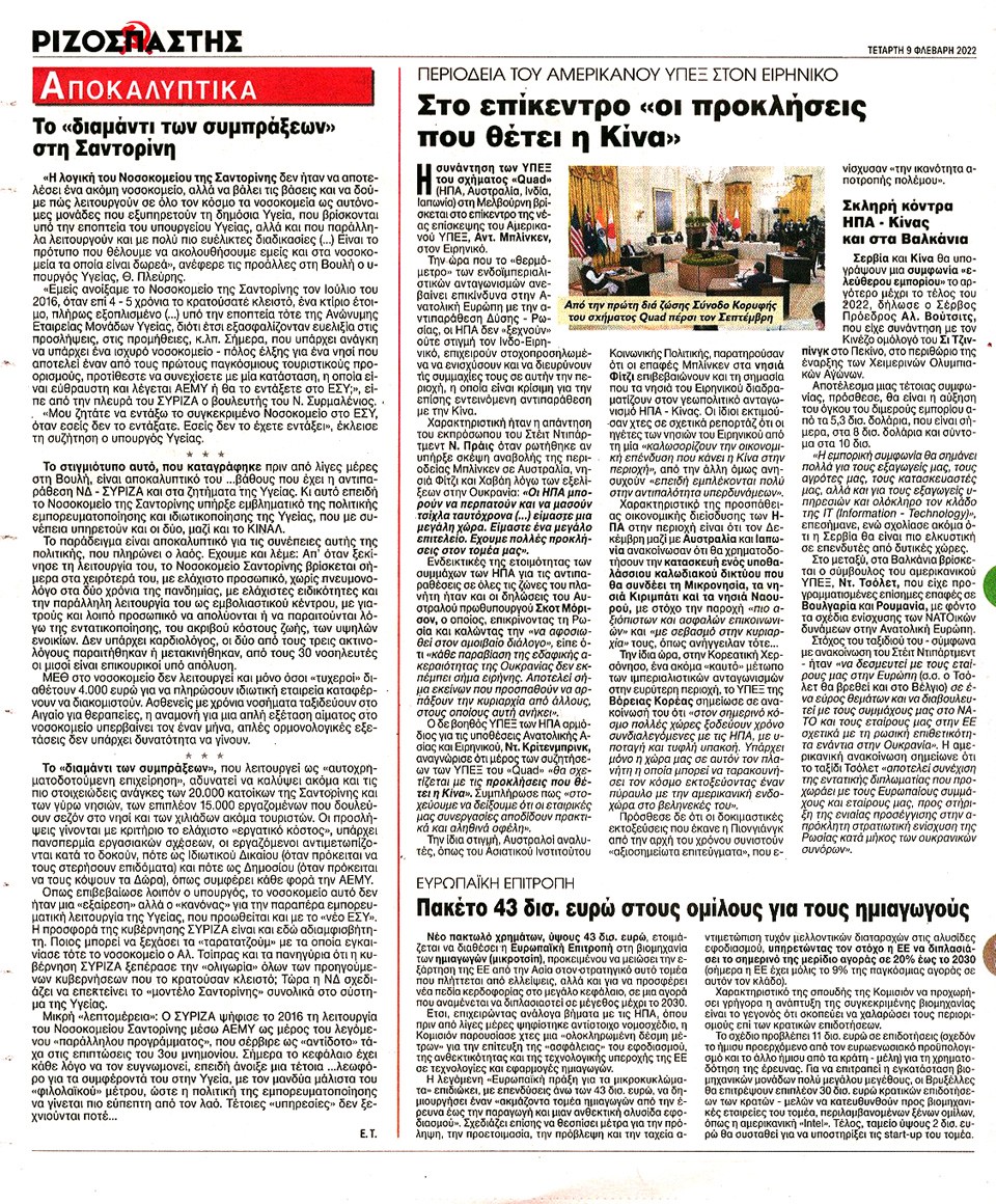 ΡΙΖΟΣΠΑΣΤΗΣ - 9 Φεβρουαρίου 2022