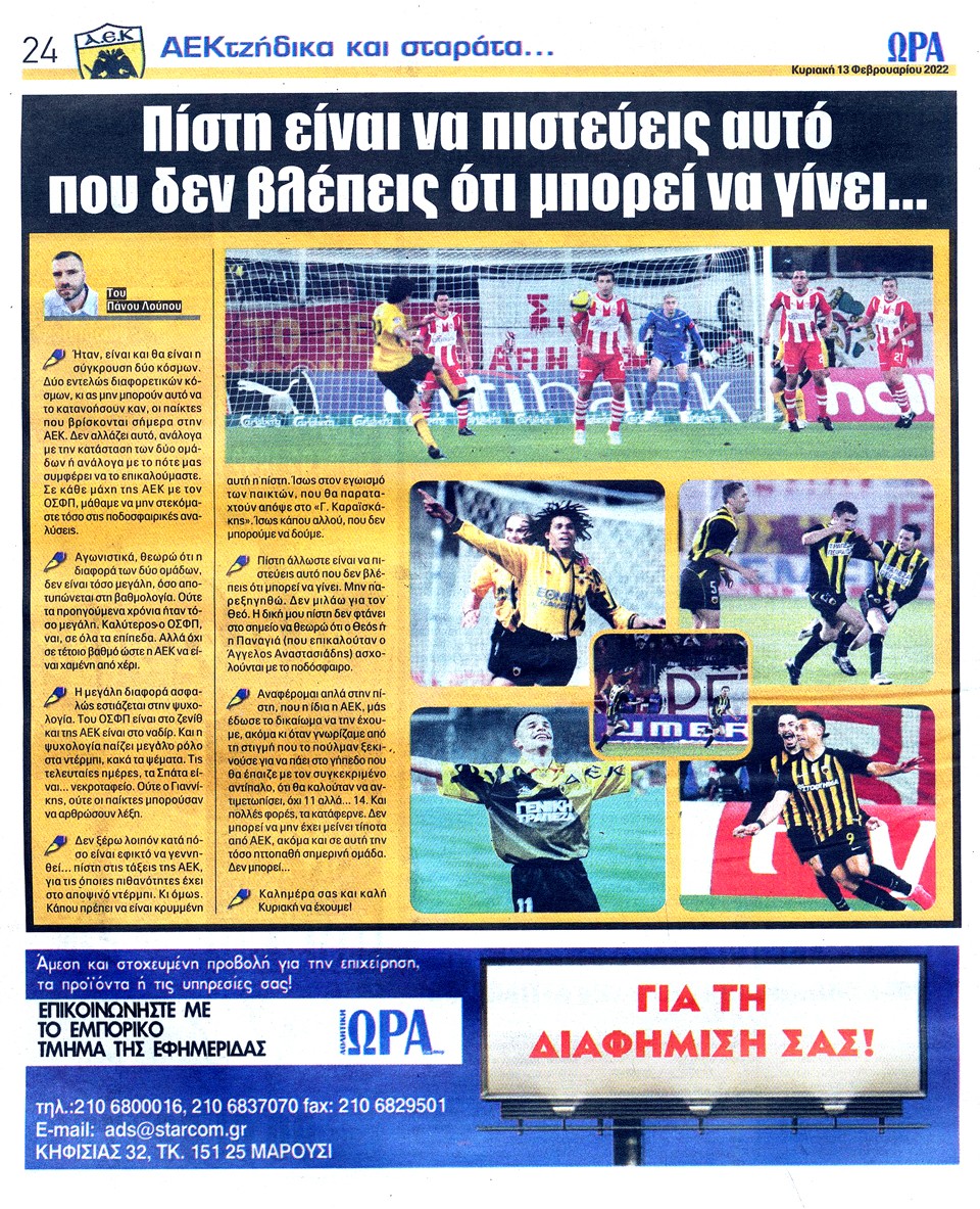 ΑΘΛΗΤΙΚΗ ΩΡΑ ΤΩΝ ΣΠΟΡ - 13 Φεβρουαρίου 2022